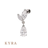 18K gold brilliant leaf with dangling pear shape CZ with flat back threaded stud.