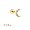 Medical grade surgical steel Moon with CZ with a threaded stud having a flat back.